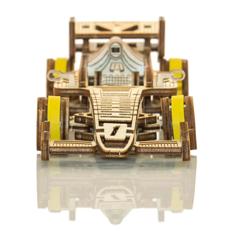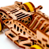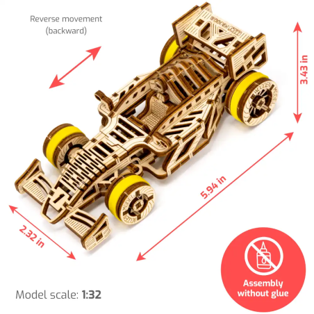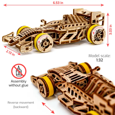 Bolid to nie jest zwyczajny model; to poszukiwacz przygód, który napędza się do 1 metra do przodu i do tyłu. Dzięki silnikowi na gumkę i mechanizmowi zwrotnemu, poczujesz się jak prawdziwy mechanik, budząc do życia ten pojazd.