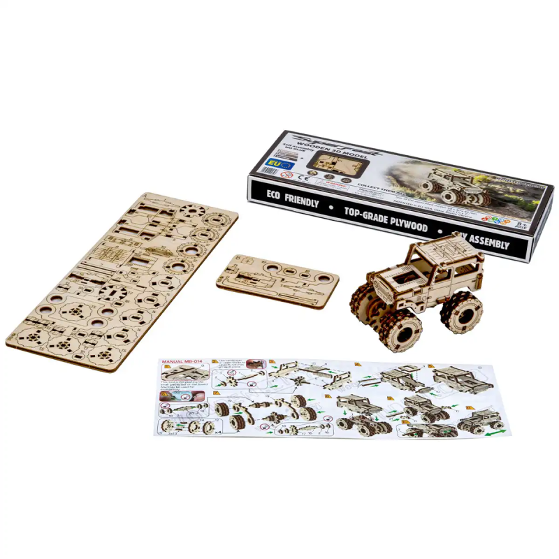 Przedstawiamy niesamowity Puzzle drewniane 3D samochód – Monster Truck 5 – arcydzieło stworzone przez naszą renomowaną firmę z siedzibą w Unii Europejskiej, pochodzącą z serca Polski. Nasze zaangażowanie w tworzenie unikalnych drewnianych modeli do montażu przejawia się w każdym starannie zaprojektowanym elemencie.