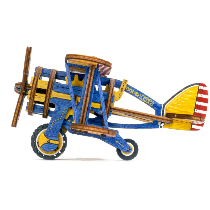 3D Drewniana Zagadka Biplan: Kolorowa Przygoda Montażowa