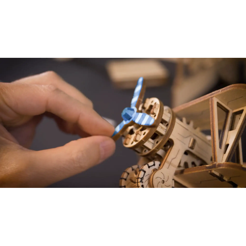 Poznaj 3D Drewniany Puzzle Samolot Biplan – cudowny mechanizm przedstawiony w pięknie zaprojektowanym drewnianym modelu. Ten biplan stanowi dowód na piękno i precyzję zawartą w lotnictwie.