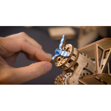 Po złożeniu biplan staje się wyjątkowym elementem dekoracyjnym, ucieleśnieniem sztuki mechanicznej, która dodaje nutkę nostalgii lotniczej i uroku DIY do każdego miejsca.
