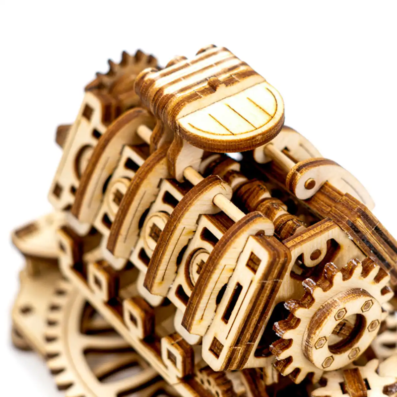 Zajmij się Drewnianą Układanką 3D, która przenosi potężny silnik V8 do Twojego salonu. Ten model zachęca Cię do odkrywania zachwycających niuansów prawdziwego silnika V8 w interaktywny i praktyczny sposób.