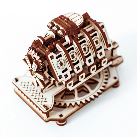 Prezentując szczegółowe komponenty silnika i złożone projekty, ten model oferuje angażujące doświadczenie w budowie. Każdy element jest starannie wykonany z brzozy, zapewniając trwałość i estetycznie przyjemny wygląd.