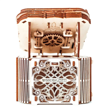 Zanurz się w zagadkę 3D Drewnianego Puzzle Tajemnicza Szkatulka, gdzie sekrety są ukryte za sprytnym mechanizmem. Wykonane z brzozy, to mechaniczne cudo otwiera się, ujawniając ukrytą komorę, gotową chronić Twoje małe skarby. To coś więcej niż model, to zaproszenie do intrygującego świata tajemnic i odkryć.