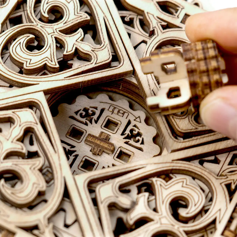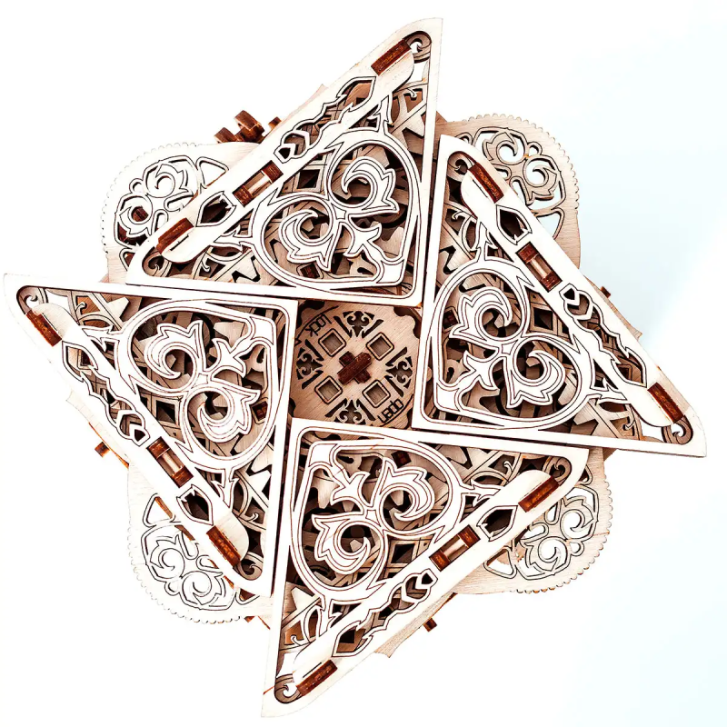 Poza funkcją i wartością rozrywkową, Tajemnicza Szkatulka służy również jako wyrafinowany element dekoracyjny. Jego skomplikowany, elegancki design nadaje tajemniczości i intrygi każdej przestrzeni. Nawet można przeznaczyć jego opakowanie na podstawkę, prezentując swój model z klasą.