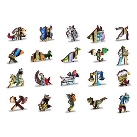 Przeznaczone zarówno dla dorosłych, jak i młodzieży powyżej 14 roku życia, jego promienne kolory z pewnością urzekną. Każdy kawałek ma swój unikalny kształt, zapewniając wyjątkowy akcent. W zależności od tematu, nasze kreacje integrują wielkie kształtne elementy – zwierzęta, zabytki lub inne hipnotyzujące motywy, czyniąc proces montażu jeszcze bardziej intrygującym.