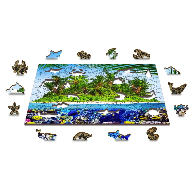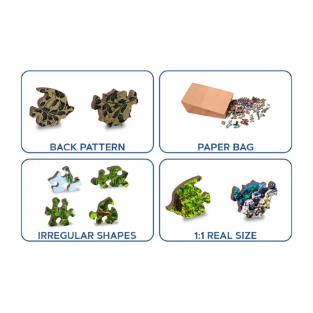 Każdy segment tego zestawu wyróżnia się, starannie wykonany, aby być unikatowym w kształcie. Czy to eteryczne ryby, czy malownicze widoki wyspy, unikatowe kontury każdej części potęgują emocje związane z montażem.