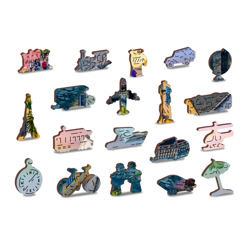 Każda układanka w tej serii cechuje się tematycznym precyzyjnym cięciem. W zestawach związanych z zwierzętami znajdziesz unikalne elementy różnych stworzeń, a zestawy związane z podróżami będą zawierać charakterystyczne elementy przedstawiające zabytki z różnych krajów.