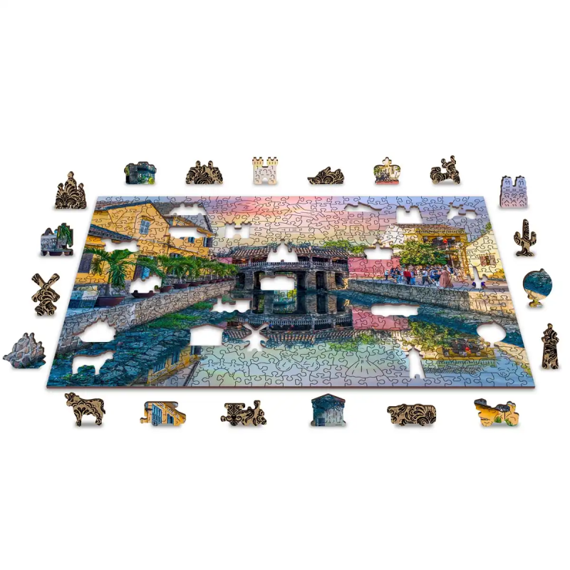 Dzięki temu unikalnemu produktowi, barwny świat Mostu Japońskiego w mieście Hoi An, Wietnam, ożywa w żywych kolorach i wymagających detalach. Składający się z 500 wyjątkowych kawałków, z każdym o unikalnym kształcie, obiecuje być fascynującym wyzwaniem zarówno dla dzieci, jak i dorosłych.