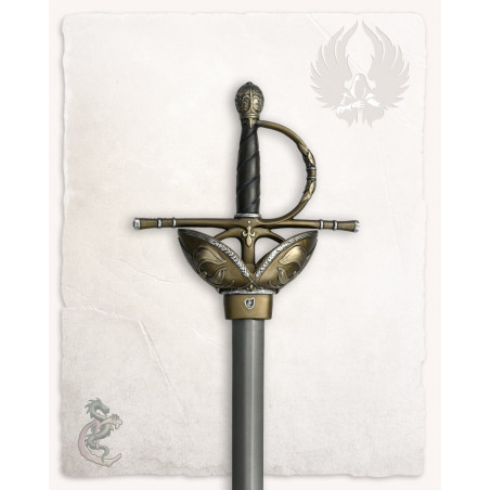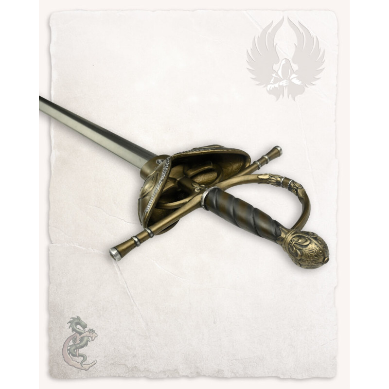 Ten rapier Calimacil został przeprojektowany — ma nowe kolory i jeszcze bardziej elastyczny rdzeń, przeznaczony do pchnięć. Ostrze jest wystarczająco elastyczne, by umożliwiać pchnięcia bez ryzyka. Garda, podobnie jak reszta miecza, wykonana jest z bezpiecznej pianki Calimacil, dzięki czemu będzie się wyginać, ale nie złamie, zapewniając dużą trwałość. Cały miecz jest niezwykle realistyczny, co czyni go idealnym zarówno do rekonstrukcji historycznych, jak i LARP. Idealny dla muszkieterów; rapier może być też używany przez konkwistadorów lub samotnych awanturników.