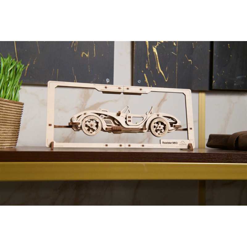 Roadster MK3, podobnie jak inne klasyczne pojazdy w naszej nowej linii puzzli 2,5D, różni się od wszystkiego, co UGEARS wyprodukował wcześniej. Te drewniane mechaniczne obrazy są przeznaczone do statycznego wyświetlania, ale z twistem: ruchome części, które ożywiają obraz. Roadster MK3 jest przystojnym dodatkiem do znakomitej kolekcji samochodów, motocykli, ciężarówek i innych znakomitych motoryzacyjnych modeli DIY firmy UGEARS.