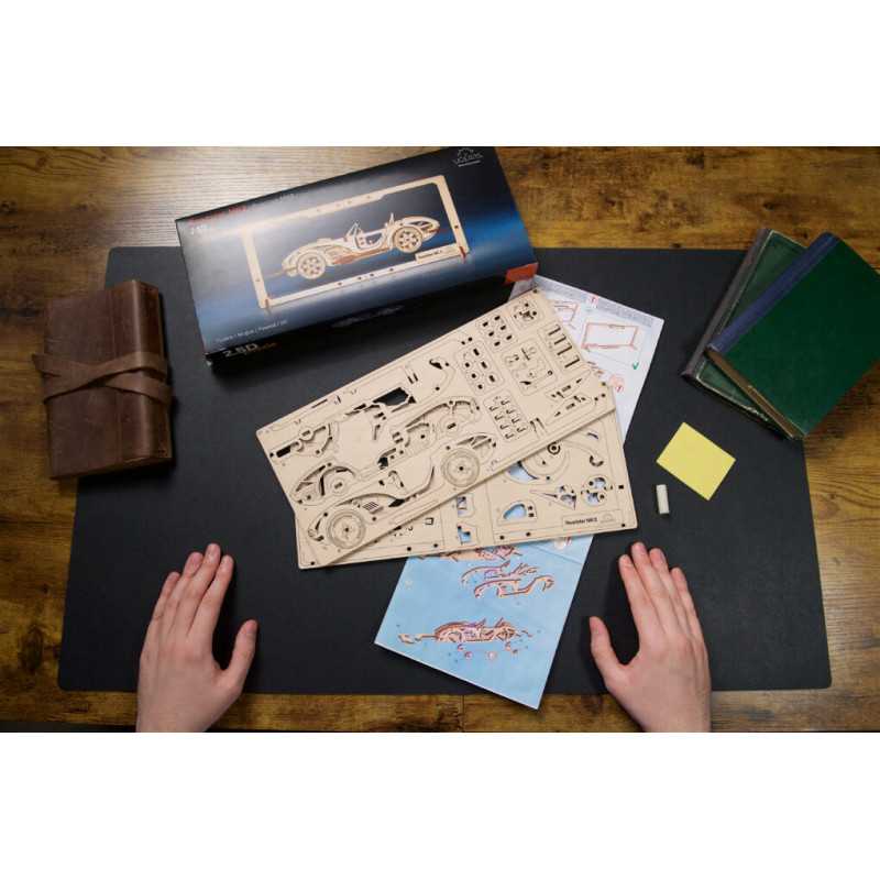 Rozpocznij swoją kolekcję drewnianych puzzli 2,5D z Roadsterem MK3, a następnie poznaj wspaniały świat mechanicznych puzzli 3D Ugears, w tym samochodów, ciężarówek, statków, motocykli, automatów, robotów, drewnianych pudełek z puzzlami i zestawów modelowych STEM Lab.