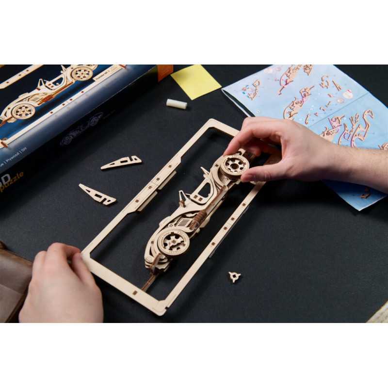 UGEARS jest uwielbiany na całym świecie za innowacyjne drewniane modele mechaniczne, które się poruszają, a każdy z nich ma genialny projekt i inżynierię. W przypadku naszych modeli 2,5D wszystko spłaszczyliśmy i umieściliśmy model w ramce, dla tych, którzy lubią eksponować atrakcyjne rękodzieła DIY. Puzzle Ugears 2.5D to zabawna, dynamiczna alternatywa dla tradycyjnych puzzli, które trzeba przykleić do podstawy, a następnie zamontować w ramce, jeśli chcesz zachować i wyeksponować swoje dzieło. Twoje puzzle obrazkowe Roadster MK3 2.5D są dostarczane we własnej ramie, z podstawkami na nogi i uchwytem na obrazek – wystarczy złożyć i umieścić lub powiesić swojego Roadstera gdziekolwiek chcesz!