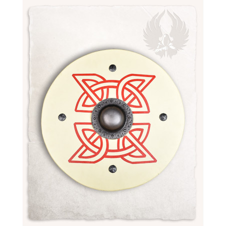Okrągła tarcza „Rorrik” z serii „Battle Standard” to klasyczna tarcza o kształcie tarczy wikińskiej, znana z ulubionych filmów i seriali o Wikingach. Dostępna jest w różnych kolorach, a także w wersji z wyglądem drewna. Z tyłu krawędź i uchwyt są przymocowane do solidnej płyty z tworzywa sztucznego, co zapewnia tarczy stabilność.