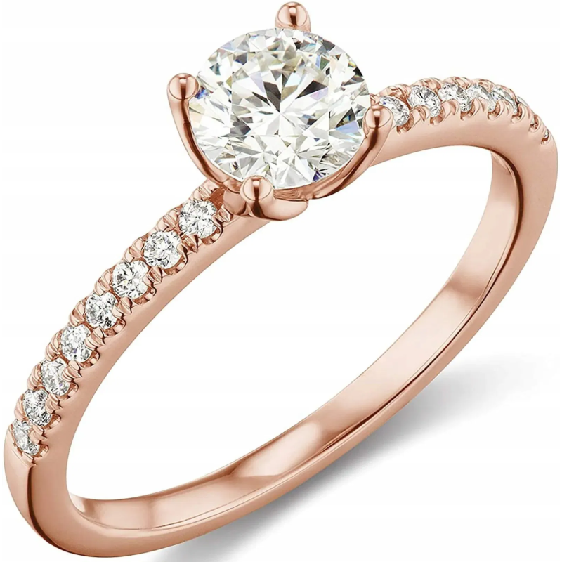RÓŻOWE ZŁOTO PIERŚCIONEK BRYLANT OBRĄCZKA STAL CHIRURGICZNA ROZMIAR 20