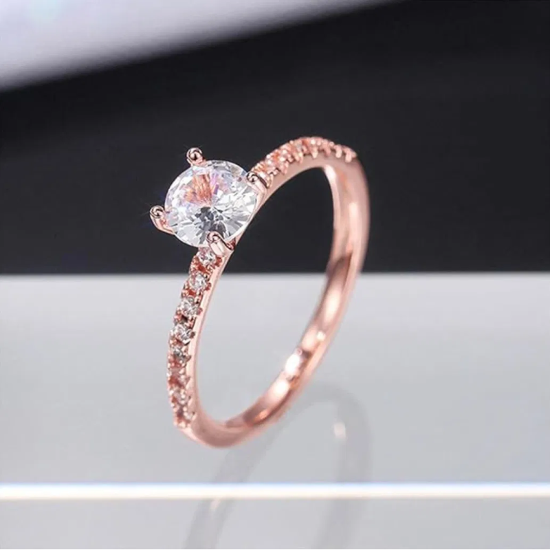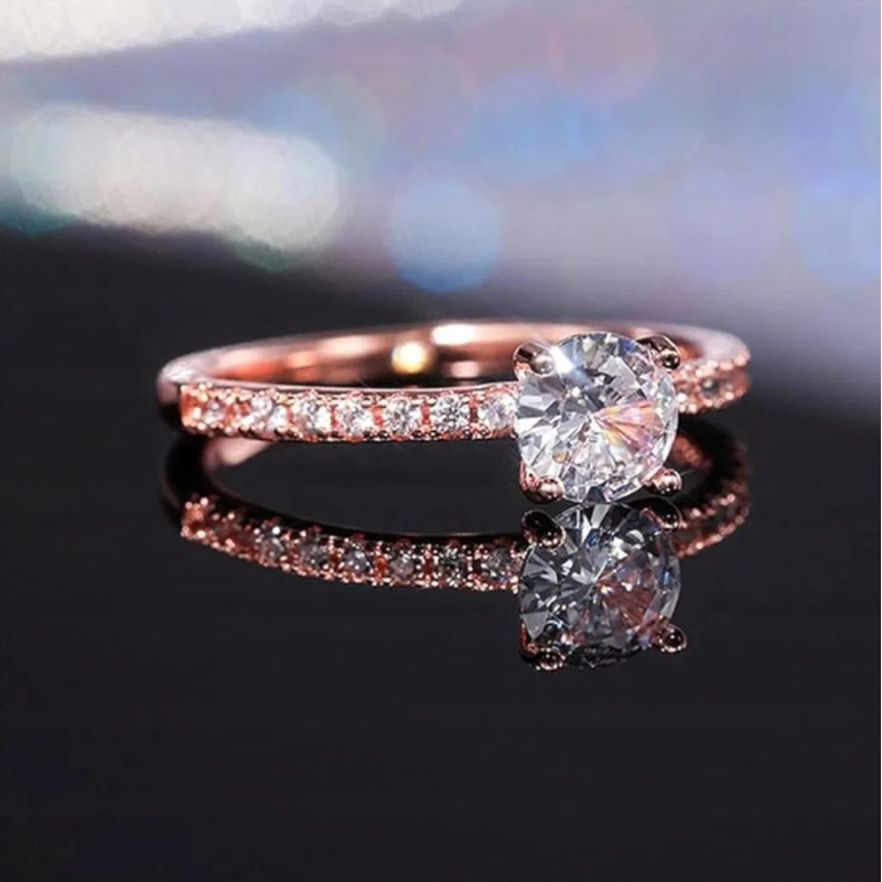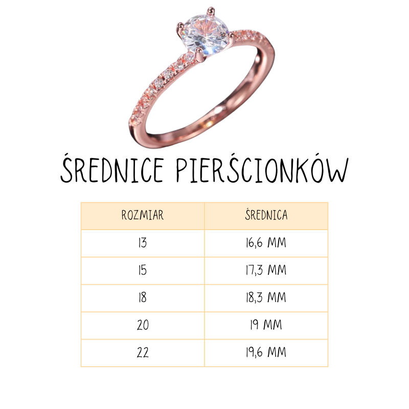 RÓŻOWE ZŁOTO PIERŚCIONEK BRYLANT OBRĄCZKA STAL CHIRURGICZNA ROZMIAR 22
