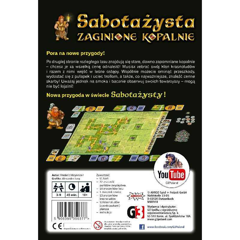 Sabotażysta: Zaginione kopalnie to gra planszowa z elementem blefu, przeznaczona dla 3 do 9 graczy, w wieku od 10 lat.