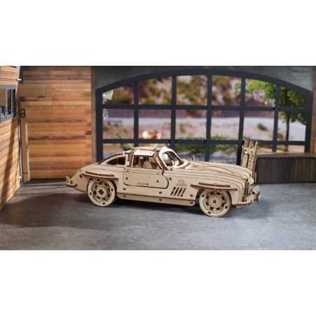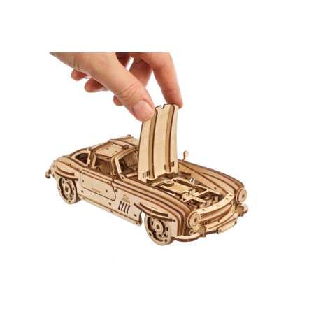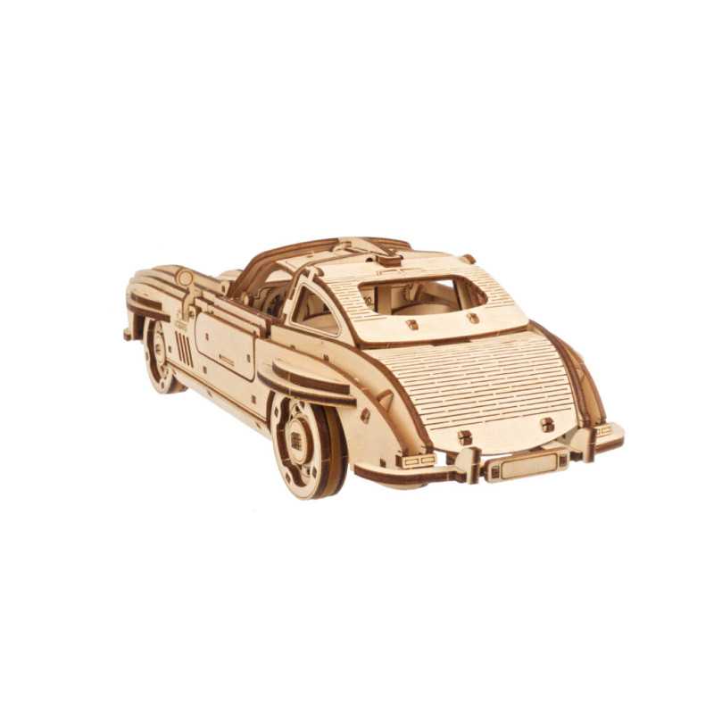 Zgrabny model sportowego auta będzie idealnym prezentem zarówno dla fanów motoryzacji, jak i modelarstwa. Posiada maskę z możliwością otwierania, pod którą kryje się silnik – drewniane serce Twojego coupé.