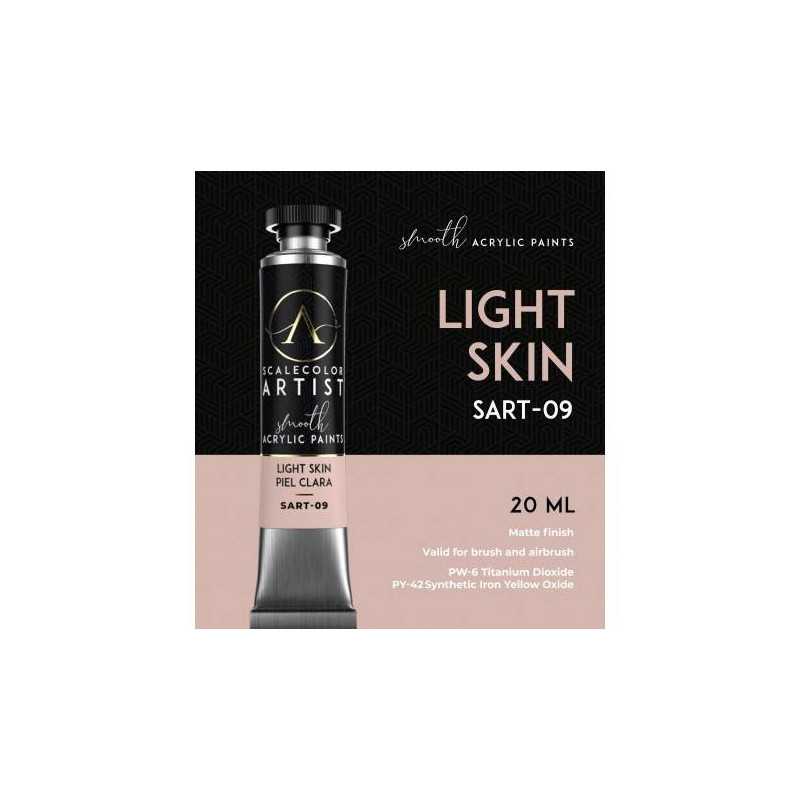 Seria Art od Scale 75 to gęste i dopracowane farby akrylowe dla każdego konesera sztuki.  Beżoworóżowy kolor Light Skin wyciągnie highlighty na twarzy i bicepsach, zarówno na figurce jak i na płótnie.    Farba w tubce o pojemności 20 ml. Po wyschnięciu cechuje się matowym wykończeniem.    Modelarz radzi: farba po wyciśnięciu będzie gęsta - by korzystać z aerografu potrzebne będzie rozmieszanie z rozcieńczalnikiem, najlepiej dostosowanym do tego typu urządzeń.  farba posłuży ci dłużej, jeśli użyjesz mokrej palety.