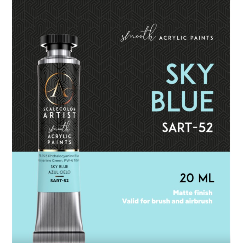 Seria Artist Range od Scale 75 to gęste i dopracowane farby akrylowe dla każdego konesera sztuki.  Błękitny kolor Sky Blue pozwala na łatwe uzyskanie efektu realistycznego nieba i przestrzeni kosmicznej. Ten subtelny kolor doskonale sprawdzi się również w malowaniu wody, dodając jej delikatnego, niebieskiego odcienia.   Farba w tubce o pojemności 20 ml. Po wyschnięciu cechuje się matowym wykończeniem.    Modelarz radzi: farba po wyciśnięciu będzie gęsta - by korzystać z aerografu potrzebne będzie rozmieszanie z rozcieńczalnikiem, najlepiej dostosowanym do tego typu urządzeń.  farba posłuży ci dłużej, jeśli użyjesz mokrej palety.