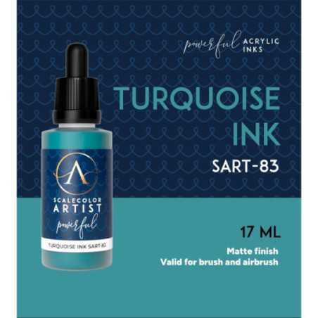 Seria Artist Range oferuje znakomite tusze akrylowe do wzmacniania kolorów od Scale 75 - posiadają gęsty pigment i płynną bazę, co czyni je niezwykle skutecznymi w technikach blendingu i glazingu.   Turqouise Ink to turkusowy tusz, który nada charakteru kadbłuom statków i skórze morskich abominacji, bez zakrywania detali.   Farba w buteleczce o pojemności 17 ml z zakraplaczem. Idealna zarówno do malowania pędzlem, jak i aerografem. Produkt charakteryzuje się wysoką intensywnością koloru.  Modelarz radzi: jak z większością farb długie stanie, nawet w magazynie, może powodować separacje medium od pigmentu, dlatego też pamiętaj, by dobrze wstrząsnąć butelką przed użyciem.  jeśli chcesz przyśpieszyć etap mieszania, warto zaopatrzyć się w metalowe kulki i wrzucić je do buteleczki.