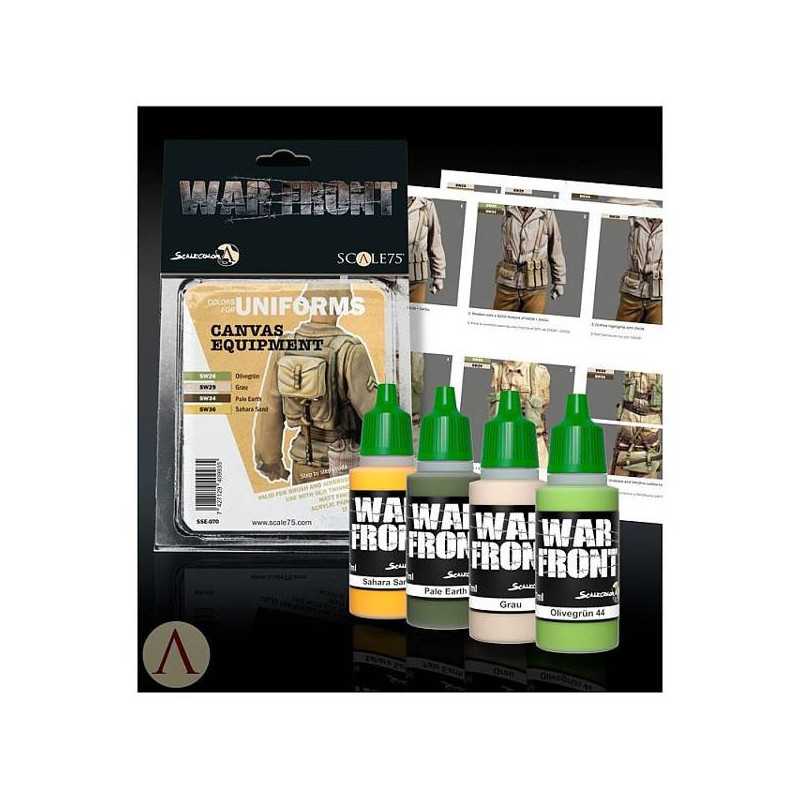 Zestaw Canvas Equipment Paint Set zawiera cztery podstawowe kolory dla pomalowania mundurów oraz oprzyrządowania z okresu II Wojny światowej.  W środku opakowania odnajdziesz też prosty instruktaż, jak nakładać farby.    W zestawie odnajdziesz farby WarFront:  Olivegrun 44  Grau  Pale Earth  Sahara Sand    Wszystkie w 17 ml buteleczkach z zakraplaczem.  Sprawdzą się zarówno do malowania pędzlami, jak i aerografem.
