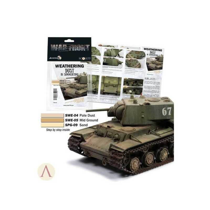 Zestaw Dust in Summertime zawiera dwa washe olejowe oraz pigment pozwalające na uzyskanie piaskowego ubrudzenia na modelu.  W środku opakowania odnajdziesz też prosty instruktaż, jak nakładać washe oraz pigment.    W zestawie odnajdziesz washe olejowe Soilworks:  Pale dust  Mid Ground  Oraz pigment Soilworks Sand