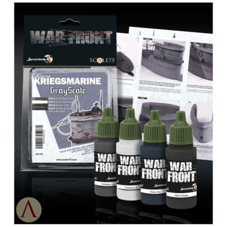 Zestaw Grayscale Paint Set zawiera cztery kolory do pomalowania jednostek niemieckiej marynarki z okresu II Wojny Światowej.   W środku opakowania odnajdziesz też prosty instruktaż, jak nakładać farby.    W zestawie odnajdziesz farby WarFront:  Winter Shadow  Panzer Grey  Dunkelgrau Grey  CremeWeiss    Wszystkie w 17 ml buteleczkach z zakraplaczem.  Sprawdzą się zarówno do malowania pędzlami, jak i aerografem.