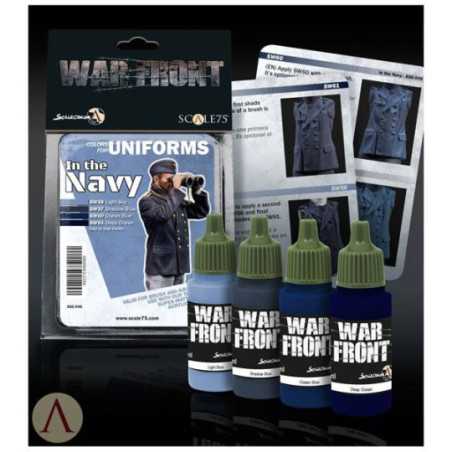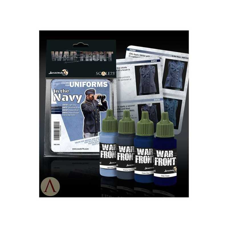 Zestaw In the Navy Paint Set zawiera cztery kolory do pomalowania ubiorów marynarzy z okresu II Wojny Światowej.   W środku opakowania odnajdziesz też prosty instruktaż, jak nakładać farby.    W zestawie odnajdziesz farby WarFront:  Light Sky  Shadow Blue  Ocean Blue  Deep Ocean    Wszystkie w 17 ml buteleczkach z zakraplaczem.  Sprawdzą się zarówno do malowania pędzlami, jak i aerografem.