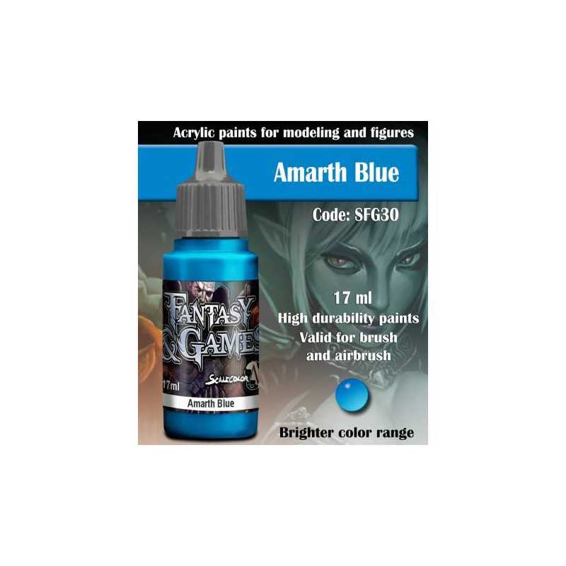 Scale 75 stworzył specjalną grupę farbek dla bitewniaków. Seria Fantasy & Games odznacza się wysoką wytrzymałością oraz jaśniejszą gamą kolorów.  Jasnoniebieski Amarth Blue przyda się do podkreślenia Highlightów na pojazdach Aeldarskich, jak również na szatach maga kolegium Niebiańskiego.    Farba w buteleczce o pojemności 17 ml z zakraplaczem. Idealna zarówno do malowania pędzlem, jak i aerografem.    Modelarz radzi: jak z większością farb długie stanie, nawet w magazynie, może powodować separacje medium od pigmentu, dlatego też pamiętaj, by dobrze wstrząsnąć butelką przed użyciem.  jeśli chcesz przyśpieszyć etap mieszania, warto zaopatrzyć się w metalowe kulki i wrzucić je do buteleczki.  farba posłuży ci dłużej, jeśli użyjesz mokrej palety.