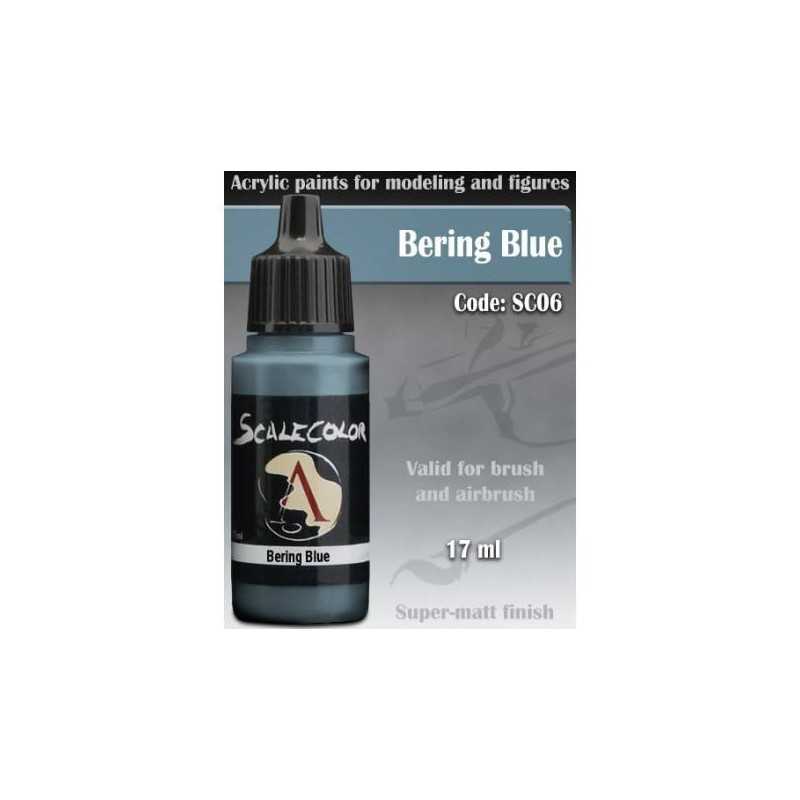 Farba akrylowa w kolorze szaro-niebieskim od Scale 75.  Intensywny kolor Bering Blue przywodzi na myśl zimne morskie fale.  Przyda się zarówno przy potężnych Space wolfach jak i przy cieniach szat prastarych magów.    Farba w buteleczce o pojemności 17 ml z zakraplaczem. Idealna zarówno do malowania pędzlem, jak i aerografem. Produkt charakteryzuje się wysoką intensywnością koloru.    Modelarz radzi: jak z większością farb długie stanie, nawet w magazynie, może powodować separacje medium od pigmentu, dlatego też pamiętaj, by dobrze wstrząsnąć butelką przed użyciem.  jeśli chcesz przyśpieszyć etap mieszania, warto zaopatrzyć się w metalowe kulki i wrzucić je do buteleczki.  farba posłuży ci dłużej, jeśli użyjesz mokrej palety.