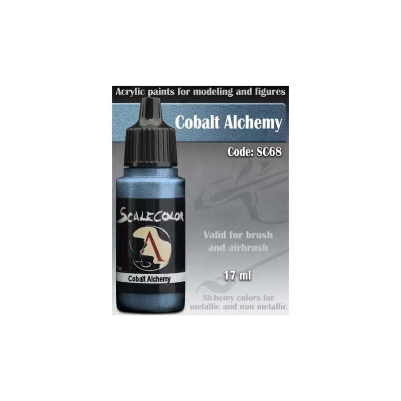 Seria Metal n' Alchemy to znakomite farby akrylowe z metalicznym pigmentem od Scale 75.  Cobalt Alchemy oferuje niebieski metaliczny kolor, doskonały na Aeldarskie zbroje lub łuski niebieskiego smoka.    Farba w buteleczce o pojemności 17 ml z zakraplaczem. Idealna zarówno do malowania pędzlem, jak i aerografem. Produkt charakteryzuje się wysoką intensywnością koloru.    Modelarz radzi: jak z większością farb długie stanie, nawet w magazynie, może powodować separacje medium od pigmentu, dlatego też pamiętaj, by dobrze wstrząsnąć butelką przed użyciem.  jeśli chcesz przyśpieszyć etap mieszania, warto zaopatrzyć się w metalowe kulki i wrzucić je do buteleczki.  farba posłuży ci dłużej, jeśli użyjesz mokrej palety.