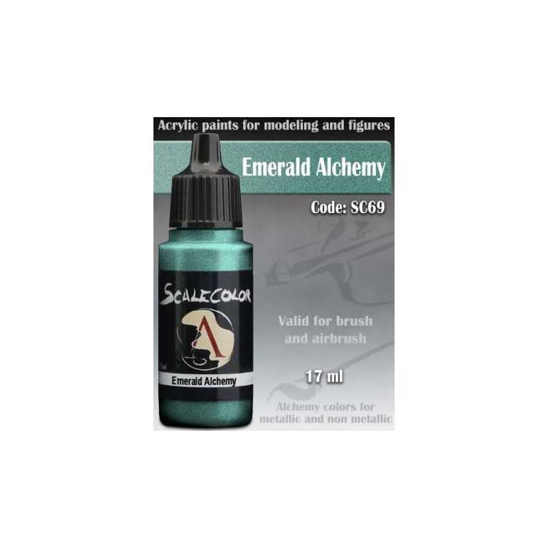 Seria Metal n' Alchemy to znakomite farby akrylowe z metalicznym pigmentem od Scale 75.  Emerald Alchemy oferuje zielony metaliczny kolor, doskonały na eteryczne zbroje lub korpusy battlemechów.    Farba w buteleczce o pojemności 17 ml z zakraplaczem. Idealna zarówno do malowania pędzlem, jak i aerografem. Produkt charakteryzuje się wysoką intensywnością koloru.    Modelarz radzi: jak z większością farb długie stanie, nawet w magazynie, może powodować separacje medium od pigmentu, dlatego też pamiętaj, by dobrze wstrząsnąć butelką przed użyciem.  jeśli chcesz przyśpieszyć etap mieszania, warto zaopatrzyć się w metalowe kulki i wrzucić je do buteleczki.  farba posłuży ci dłużej, jeśli użyjesz mokrej palety.