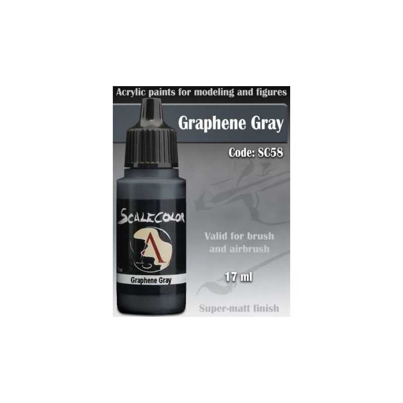 Farba akrylowa w kolorze ciemno-szarym od Scale 75.  Intensywny kolor Graphene Gray zwiększy siłę cieni na Twoich projektach.  Czy to na sierści wierzchowca Kawalerzysty, czy też na zbrojach Duergarów - wszędzie spisze się znakomicie!    Farba w buteleczce o pojemności 17 ml z zakraplaczem. Idealna zarówno do malowania pędzlem, jak i aerografem. Produkt charakteryzuje się wysoką intensywnością koloru.    Modelarz radzi: jak z większością farb długie stanie, nawet w magazynie, może powodować separacje medium od pigmentu, dlatego też pamiętaj, by dobrze wstrząsnąć butelką przed użyciem.  jeśli chcesz przyśpieszyć etap mieszania, warto zaopatrzyć się w metalowe kulki i wrzucić je do buteleczki.  farba posłuży ci dłużej, jeśli użyjesz mokrej palety.