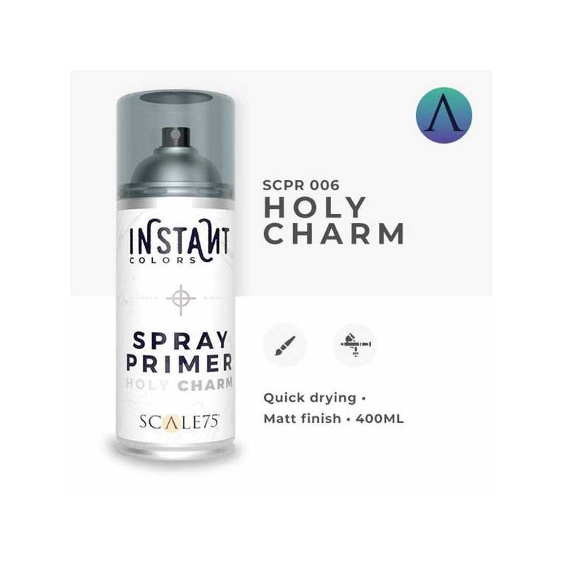 ScaleColor: Holy Charm Spray Primer to idealne połączenie jasnoszarego podkładu i kolorowego sprayu. Unikalna formuła została tak zaprojektowana, aby perfekcyjne wykończenie było widoczne zarówno na plastikowych, jak i metalowych modelach. Farba wysycha bardzo szybko i pozostawia matową powłokę.  Ta puszka zawiera 400 ml produktu.    Modelarz radzi:  przed użyciem mocno wstrząśnij - tak z 60 sekund powinno wystarczyć  sprejuj miniaturki z odpowiedniej odległości - około 15-20 centymetrów od modelu  jeśli chcesz coś pokryć, nakładaj pojedyncze, cienkie warstwy i pozwalaj im wyschnąć pomiędzy kolejnymi warstwami  pamiętaj, by sprejować w wentylowanym pomieszczeniu lub na zewnątrz  po każdym użyciu przeczyść dyszę opróżniając ją do góry nogami