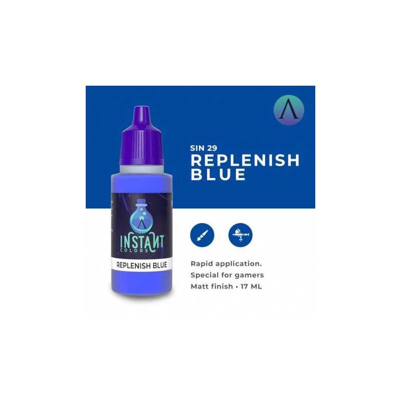 Farby Instant są znakomitym wyborem dla początkujących malarzy. Wystarczy pokryć figurkę jasnym podkładem w spreju następnie pomalować wybrane elementy farbą Instant i patrzeć jak cienie oraz highlighty robią się prawie same!    Farba w buteleczce o pojemności 17 ml w kolorze niebieskim - na spodnie unionisty czy francuskiego żołnierza z okopów pierwszej wojny światowej . Idealna zarówno do malowania prędzlem i aerografem - została przygotowana z myślą o graczach. Produkt charakteryzuje się wysoką intensywnością koloru i matowym wykończeniem.    Jak wygląda nakładanie farb typu Instant: