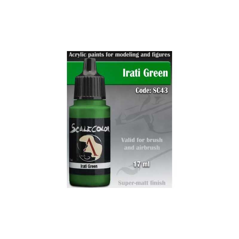 Farba akrylowa w kolorze zielonym od Scale 75.  Niech intensywny kolor Irati Green wzbudzi Twe projektowe Waaagh!  Czy to na obliczu gretchina, czy też na zielonym mundurze strzelca wyborowego - wszędzie spisze się znakomicie!    Farba w buteleczce o pojemności 17 ml z zakraplaczem. Idealna zarówno do malowania pędzlem, jak i aerografem. Produkt charakteryzuje się wysoką intensywnością koloru.    Modelarz radzi: jak z większością farb długie stanie, nawet w magazynie, może powodować separacje medium od pigmentu, dlatego też pamiętaj, by dobrze wstrząsnąć butelką przed użyciem.  jeśli chcesz przyśpieszyć etap mieszania, warto zaopatrzyć się w metalowe kulki i wrzucić je do buteleczki.  farba posłuży ci dłużej, jeśli użyjesz mokrej palety.