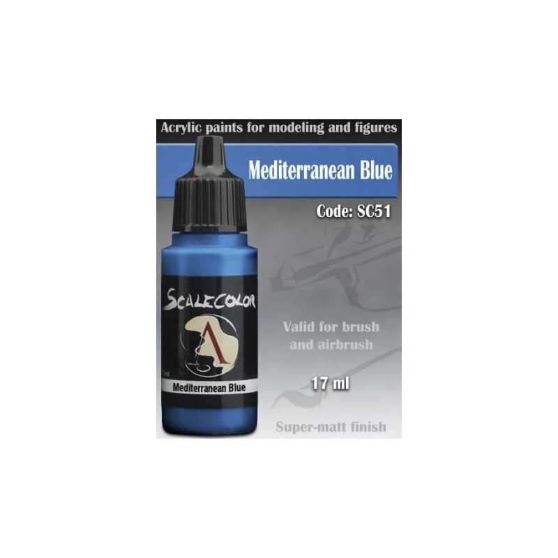 Farba akrylowa w kolorze niebieskim od Scale 75.  Dzięki Intensywnemu kolorowi Mediterranean Blue Twoje umiejętności malarskie wypłyną na pełne morze.   Zarówno przy łuskach niebieskiego smoka, jak i przy potężnym ostrzy worpalnym - ta barwa będzie doskonale pasować do wielu projektów!    Farba w buteleczce o pojemności 17 ml z zakraplaczem. Idealna zarówno do malowania pędzlem, jak i aerografem. Produkt charakteryzuje się wysoką intensywnością koloru.    Modelarz radzi: jak z większością farb długie stanie, nawet w magazynie, może powodować separacje medium od pigmentu, dlatego też pamiętaj, by dobrze wstrząsnąć butelką przed użyciem.  jeśli chcesz przyśpieszyć etap mieszania, warto zaopatrzyć się w metalowe kulki i wrzucić je do buteleczki.  farba posłuży ci dłużej, jeśli użyjesz mokrej palety.