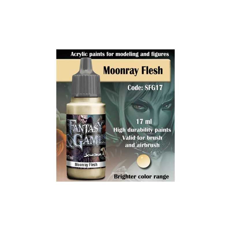 Scale 75 stworzył specjalną grupę farbek dla bitewniaków. Seria Fantasy & Games odznacza się wysoką wytrzymałością oraz jaśniejszą gamą kolorów.  Beżowożółta barwa Moonray Flesh podkreśli highlighty na twarzach żołnierzy Astra Militarum, jak również na strojach starożytnych Saracenów.    Farba w buteleczce o pojemności 17 ml z zakraplaczem. Idealna zarówno do malowania pędzlem, jak i aerografem.    Modelarz radzi: jak z większością farb długie stanie, nawet w magazynie, może powodować separacje medium od pigmentu, dlatego też pamiętaj, by dobrze wstrząsnąć butelką przed użyciem.  jeśli chcesz przyśpieszyć etap mieszania, warto zaopatrzyć się w metalowe kulki i wrzucić je do buteleczki.  farba posłuży ci dłużej, jeśli użyjesz mokrej palety.