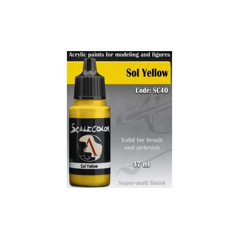 Farba akrylowa w kolorze żółtym od Scale 75.  Intensywny kolor Sol Yellow odnosi się do naszej najbliższej gwiazdy, Słońca.  Czy to na zbroi Orka, czy też na szacie greckiej mistyczki - wszędzie spisze się znakomicie!    Farba w buteleczce o pojemności 17 ml z zakraplaczem. Idealna zarówno do malowania pędzlem, jak i aerografem. Produkt charakteryzuje się wysoką intensywnością koloru.    Modelarz radzi: jak z większością farb długie stanie, nawet w magazynie, może powodować separacje medium od pigmentu, dlatego też pamiętaj, by dobrze wstrząsnąć butelką przed użyciem.  jeśli chcesz przyśpieszyć etap mieszania, warto zaopatrzyć się w metalowe kulki i wrzucić je do buteleczki.  farba posłuży ci dłużej, jeśli użyjesz mokrej palety.