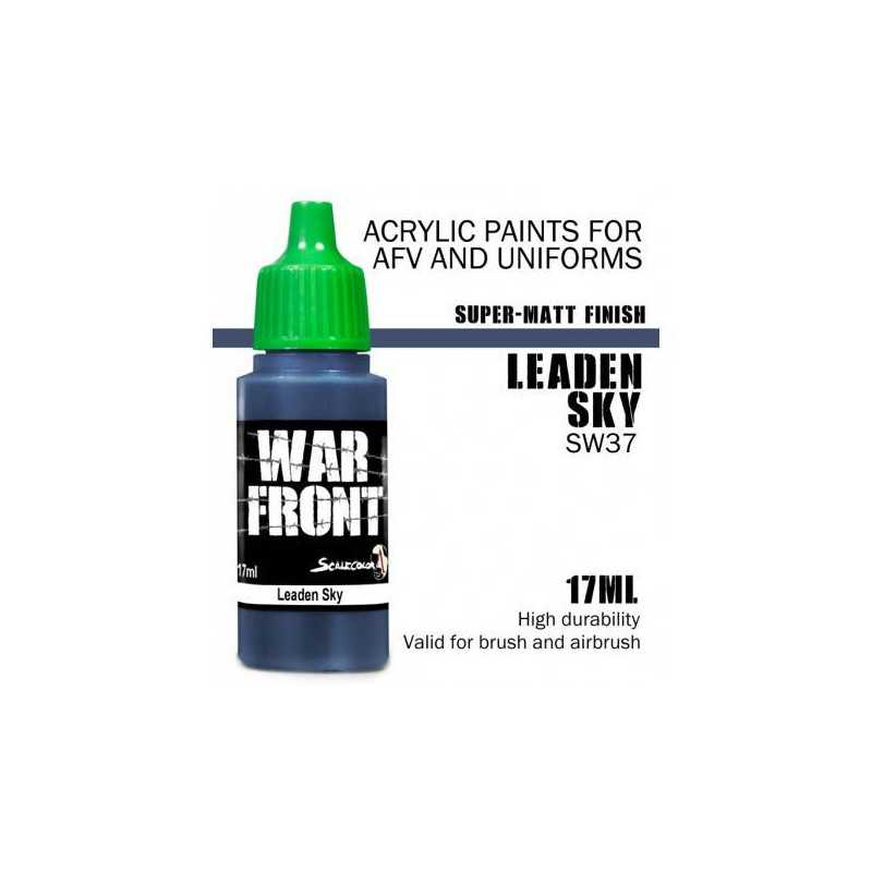Seria WarFront od Scale 75 to kolory dopasowane do natury wojny - znajdziesz tu wszystko, czego będziesz potrzebować przy malowaniu wozów pancernych, samolotów czy też piechoty.  Ciemnoniebieski kolor Leaden Sky nada się na kombinezony personelu lotniczego.      Farba w buteleczce o pojemności 17 ml z zakraplaczem. Idealna zarówno do malowania pędzlem, jak i aerografem. Po wyschnięciu cechuje się matowym wykończeniem.    Modelarz radzi: jak z większością farb długie stanie, nawet w magazynie, może powodować separacje medium od pigmentu, dlatego też pamiętaj, by dobrze wstrząsnąć butelką przed użyciem.  jeśli chcesz przyśpieszyć etap mieszania, warto zaopatrzyć się w metalowe kulki i wrzucić je do buteleczki.  farba posłuży ci dłużej, jeśli użyjesz mokrej palety.