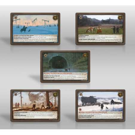 Scythe: Spotkania to wyjątkowy zestaw 32 promocyjnych kart spotkań zaprojektowanych przez fanów gry Scythe i dopracowanych przez Jamey'a Stegmaiera.