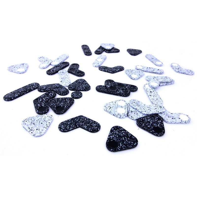 Każdy z graczy dysponuje zestawem 18 pionów: 6 prostych, 6 zgiętych i 6 trójkątnych. Na każdym pionie znajdują się 3 kropki, z których jedna jest inaczej zabarwiona. Wyróżniająca się kropka jest kropką główną i nazywana jest PÜNCTEM piona. Pozostałe 2 kropki to tzw. małe kropki.