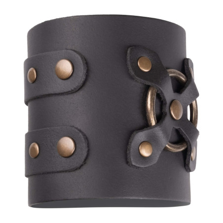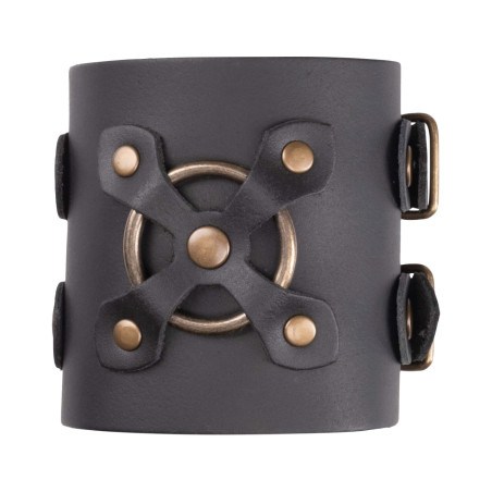 Bransoleta Alejo, ozdobiona mocno nitowanym metalowym pierścieniem, to nie tylko wyjątkowa biżuteria, ale także stylowy element zbroi. Ten imponujący dodatek doskonale nadaje się dla poszukiwaczy przygód, łowców potworów lub Norwegów, robiąc świetne wrażenie na wydarzeniach LARP, jarmarkach średniowiecznych, a także w codziennym życiu.