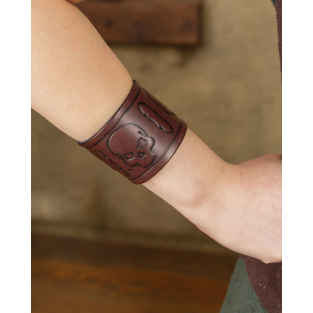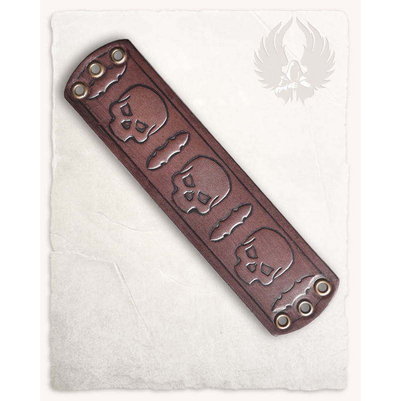 SKÓRZANA BRANSOLETA - WZÓR CZASZKI - BRĄZOWA LARP