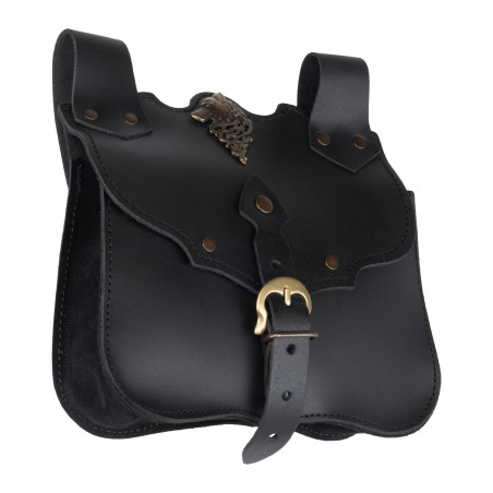 SKÓRZANA OZDOBIONA TORBA NA PAS FEROCIA - CZARNA LARP