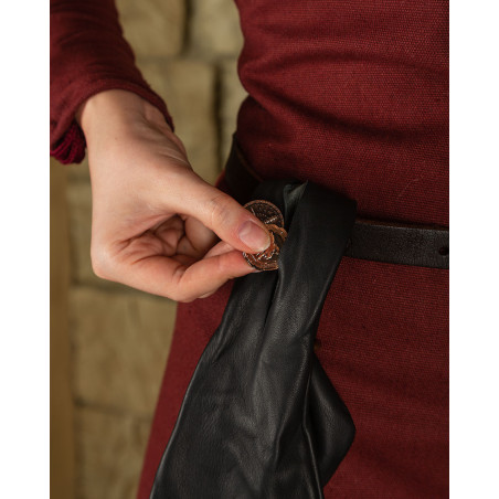 Nasza sakiewka „Denarius” wykonana jest z miękkiej skóry owczej i posiada dwa solidne pierścienie z mosiądzu, które służą do jej zamykania.