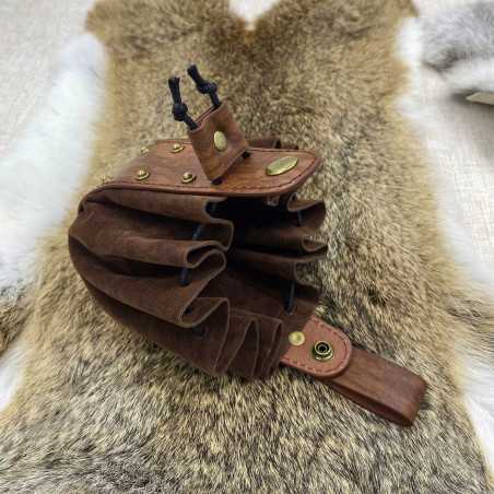 Kradghar, krasnolud z najstarszego klanu w Górach Żelaznych, zawsze był inny niż reszta swojej rodziny. Podczas gdy jego bracia i kuzyni oddawali się kowalstwu, on zaczytywał się w księgach przywożonych przez ludzkich kupców. Fascynowały go opowieści o handlowcach przemierzających kontynenty, wymieniających towary, zdobywających fortuny i... powracających jako bohaterowie. Zafascynowany ideą bycia czymś więcej niż tylko górnikiem, postanowił wyruszyć na powierzchnię, choć wiedział, że to oznacza wygnanie z klanu. Zabrał jedynie rodowe złoto – część, która przypadła mu w dziedzictwie. Złote monety i klejnoty schował do małej, skórzanej sakiewki. Była to sakiewka wykonana z najlepszej krasnoludzkiej skóry, zapięcie zaprojektowane tak, by można było ją przymocować do pasa i zawsze mieć ją blisko. Na powierzchni Kradghar wędrował z karawanami, targował się na bazarach i zdobywał doświadczenie jako kupiec. Sakiewka była jego towarzyszem w każdej transakcji, w każdej podróży. Stała się symbolem jego determinacji, by odnaleźć własną ścieżkę. Teraz, po latach, jej opowieść może należeć do Ciebie. Wypełnisz ją monetami, kośćmi czy wspomnieniami – to już zależy od Twojej własnej legendy.