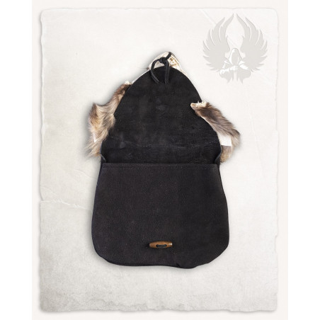 SKÓRZANA SAKWA CANIS Z FUTREM SZOPA - CZARNA LARP