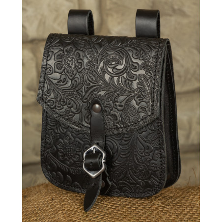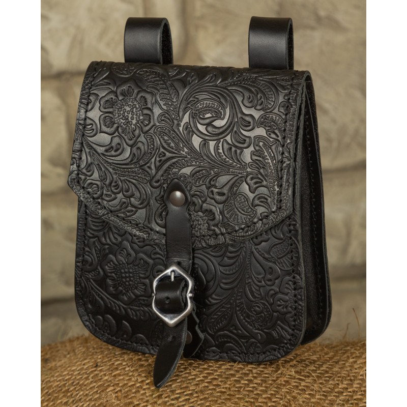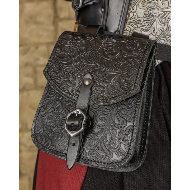 SKÓRZANA SAKWA NA PAS BEATRICE - CZARNA LARP